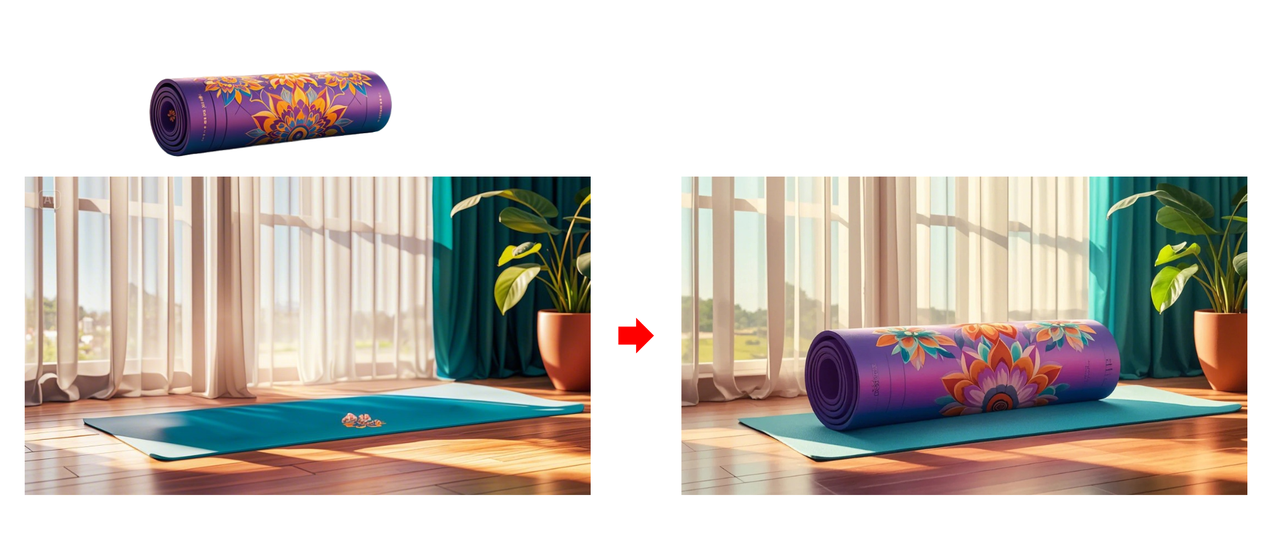 La función AI blender combina dos capas de imagen en una escena cohesiva. Además, los usuarios pueden indicar el efecto deseado ingresando las indicaciones antes de mezclar. Los diseñadores pueden usar esta herramienta para crear escenas de habitaciones con maquetas de productos para diseño de interiores, combinar diferentes diseños de empaque en una presentación de línea de productos o integrar modelos de personajes 3D en maquetas ambientales para lanzamientos de juegos o películas.