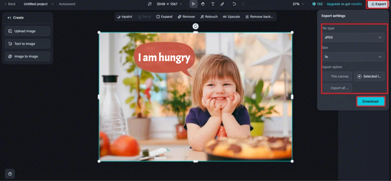 Terakhir, luangkan waktu sejenak untuk meninjaunya untuk setiap penyesuaian akhir. Gunakan opsi seperti Retouch, Remove, Inpaint, dan Expand untuk menyempurnakan desain Anda lebih lanjut. Setelah Anda puas dengan tampilannya, cukup klik tombol "Unduh" untuk menyimpan kreasi Anda dalam format berkualitas tinggi. Sekarang, Anda siap untuk memamerkan foto unik Anda dengan gelembung ucapan yang menarik di semua platform!