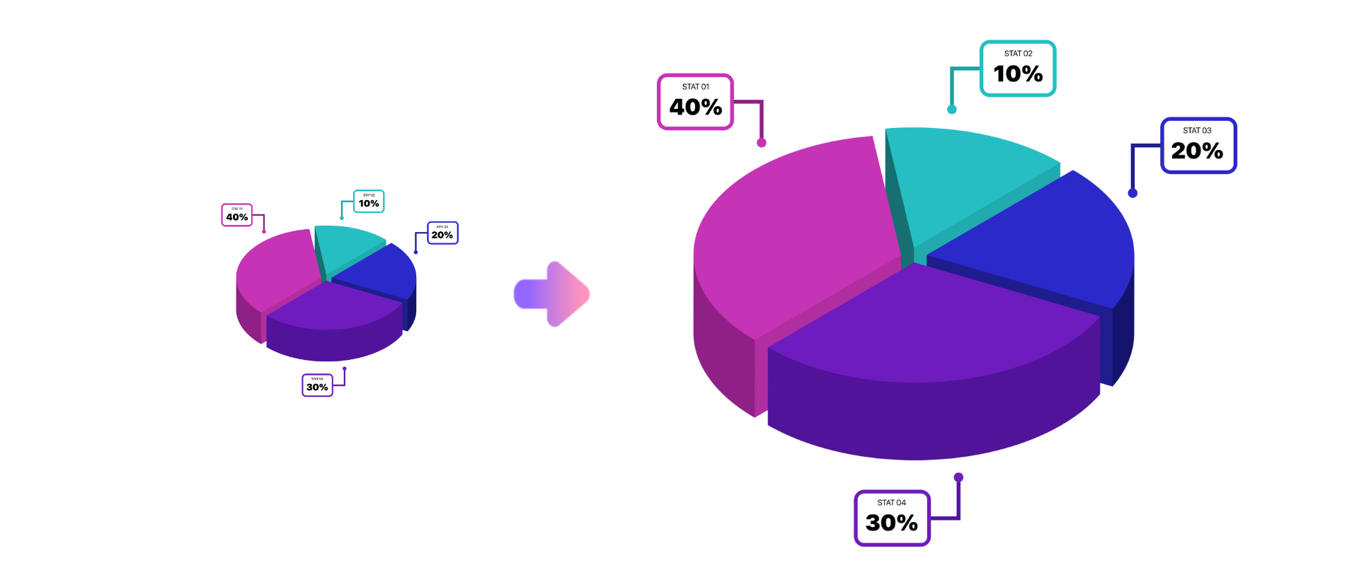 - インタラクティブな要素:ユーザーがさまざまなセグメントとやり取りしたときに追加情報を表示するホバー効果付きのグラフを作成し、データをより魅力的にします。 3