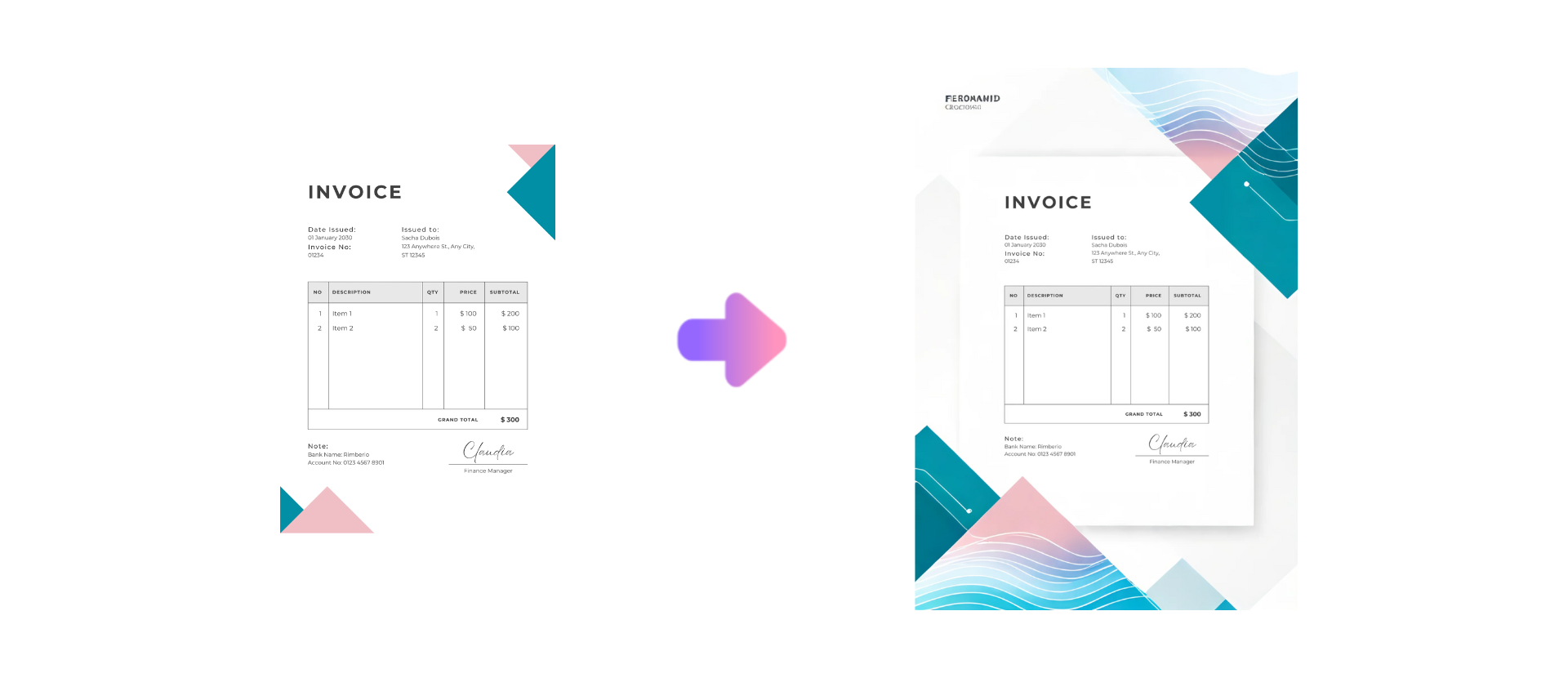 - Aangepaste sjablonen: Kies uit een breed scala aan professioneel ontworpen factuursjablonen die zijn afgestemd op verschillende bedrijfsstijlen en industrieën. Personaliseer uw facturen door uw bedrijfslogo, merkkleuren en essentiële bedrijfsgegevens toe te voegen voor een professionele uitstraling. Met eenvoudige aanpassingsopties kunt u uw eigen factuur samenstellen die uw merkidentiteit weerspiegelt met behoud van een gepolijste en georganiseerde lay-out. 2