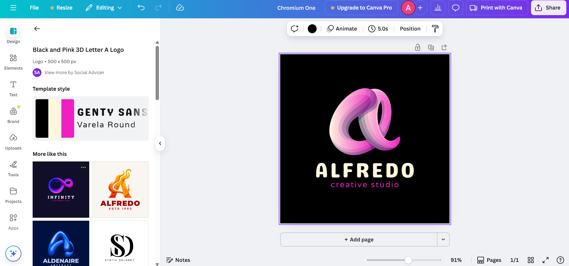 In the left panel, you can browse through various 3D logo templates. Select the one that best matches your brand style and use it as the basis for your 3D logo.