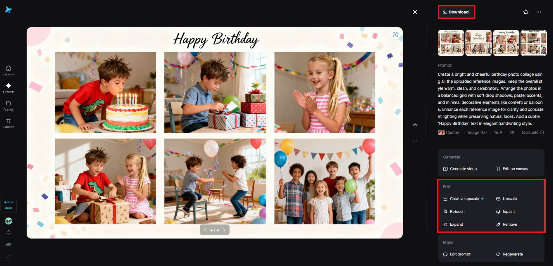 You can now make birthday collages with clean layouts and bright colors using several AI tools. You can even download them in high resolution. But Dreamina stands out because it supports HD and 4K-ready results through creative upscale, perfect for printing, sharing, or framing your final collage.