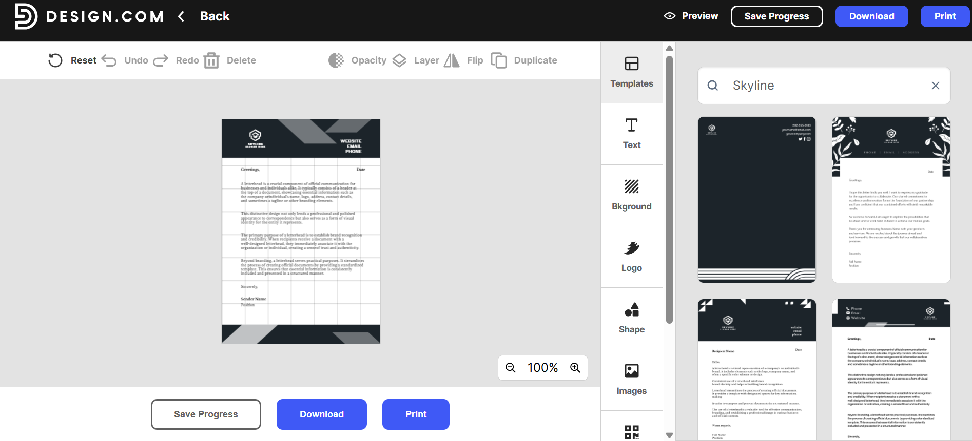- Extensive marketing material: Beyond letterheads, Design.com provides access to tools for creating social media designs and print designs, ensuring all your marketing assets look cohesive. 2