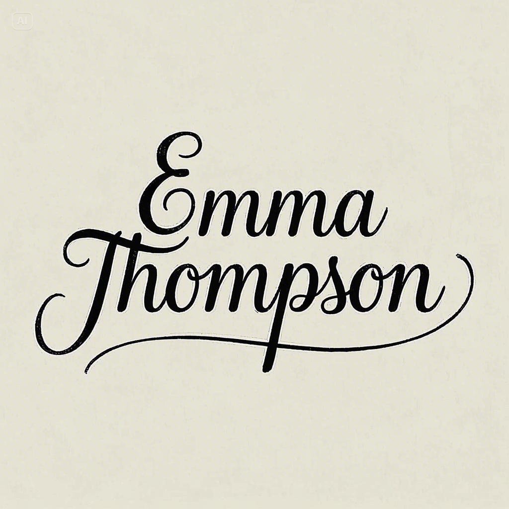 Prompt: "Design a classic handwritten signature for "Emma Thompson" with elegant cursive strokes and flowing lines. Use deep black ink with varying line weights to create a sophisticated look. Add subtle flourishes at the beginning and end of the name for a timeless feel."