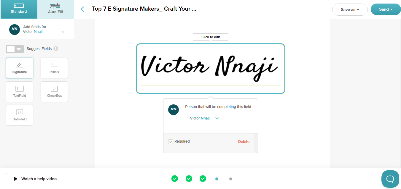 SignWell is a straightforward electronic signature generator designed for quick implementation. This cloud-based platform focuses on providing essential e-signature features without overwhelming users with complex options. Perfect for anyone seeking to create unique digital signatures without the learning curve of more complex design tools.