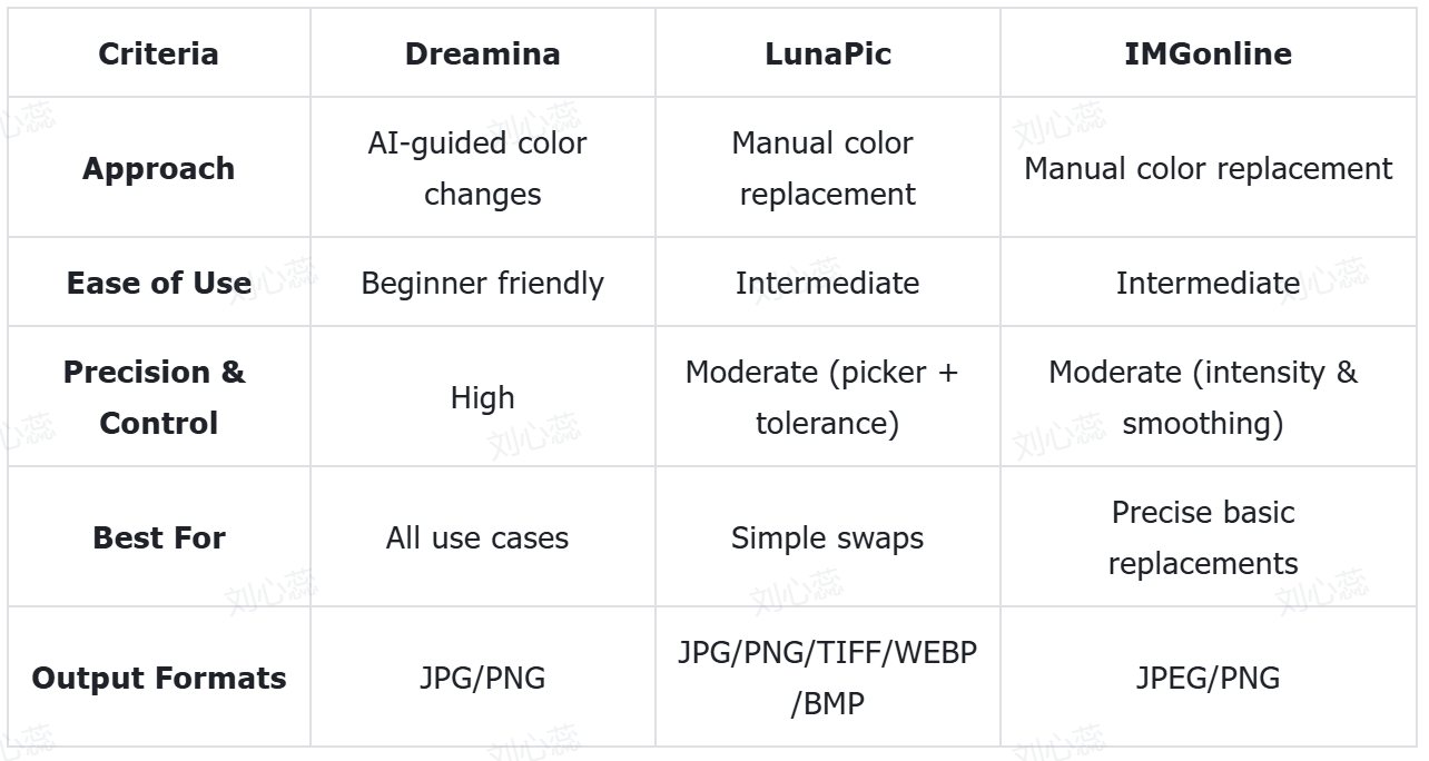 Knowing how to replace color in an image online will enable creators to maintain brand consistency, correct images, and pursue new designs effectively. Although tools such as LunaPic and IMGonline can be helpful for basic editing, Dreamina offers a more precise AI-assisted approach, natural blending, and more sophisticated features such as Inpaint, Upscale, and Expand. It is very user-friendly and produces professional output that aligns with contemporary workflows. Take a step to start using Dreamina today and replace image color easily and creatively.