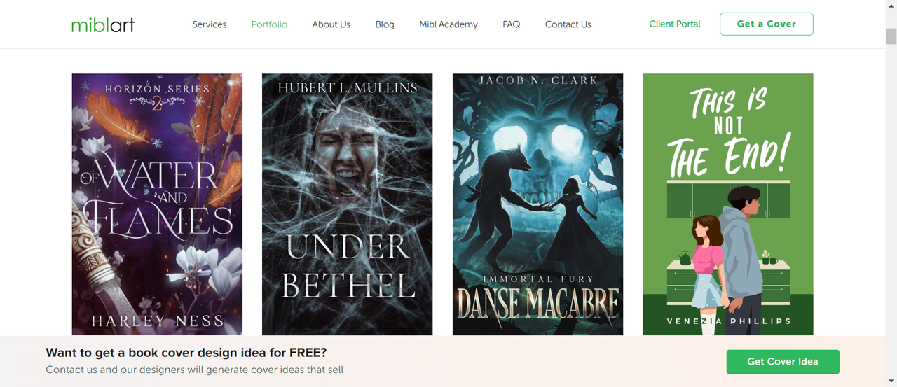 Miblart oferă o abordare personalizată a designului coperților de cărți, care îi ajută pe autori, autoeditori și scriitori independenți să-și aducă viziunile la viață. Cu accent pe crearea unei coperte frontale atrăgătoare, Miblart oferă servicii care includ ilustrații personalizate și lucrări de design adaptate nevoilor specifice ale unui autor, asigurându-se că cartea lor iese în evidență pe rafturi și online.