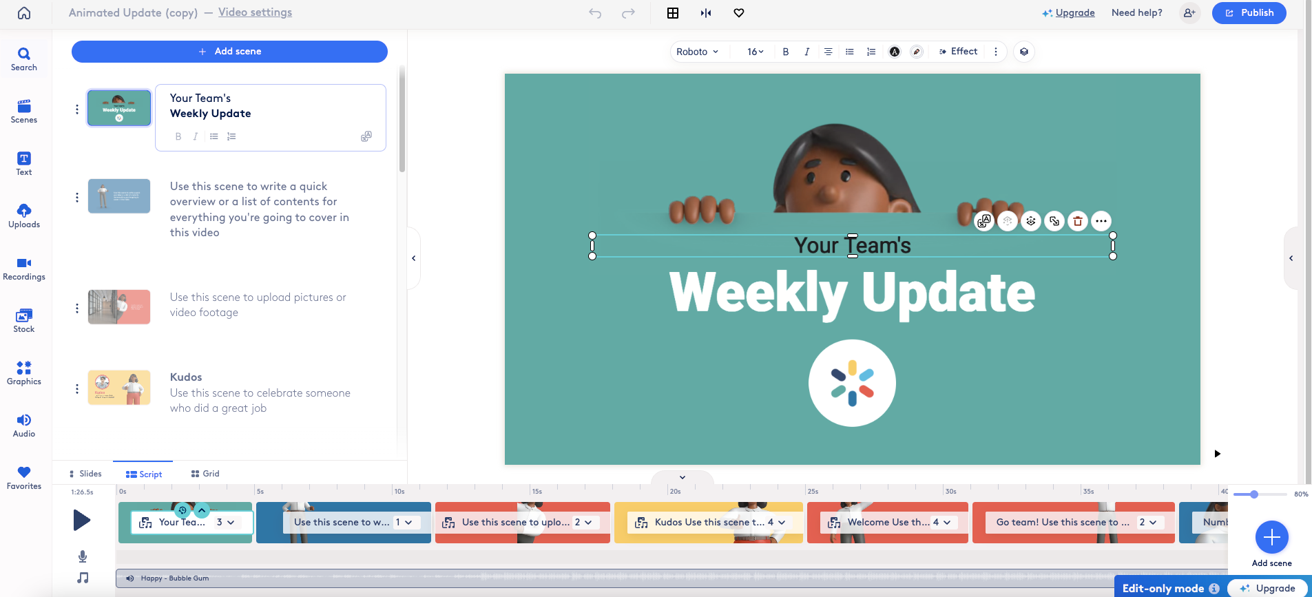 - Karakter animasyon yeteneği sınırlıdır. Biteable, temel düzenleme seçenekleri nedeniyle derin hikaye anlatımı için optimize edilmemiştir.