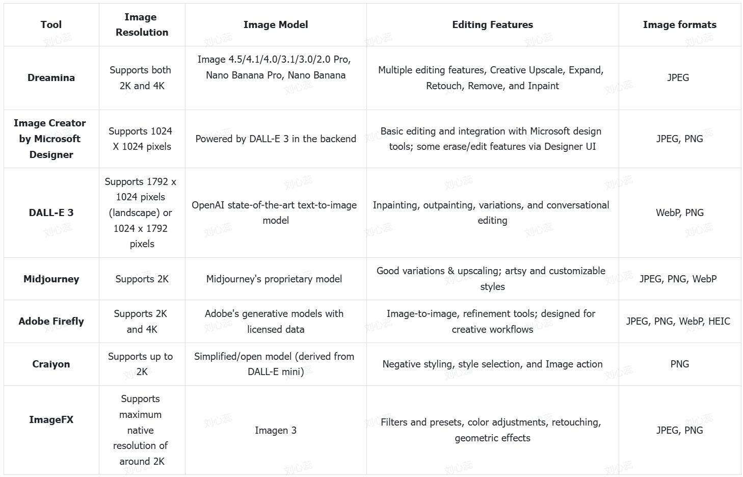 Bây giờ bạn đã biết về các trình tạo hình ảnh AI thực tế hàng đầu, hãy so sánh nhanh các công cụ này dựa trên các khía cạnh khác nhau, bao gồm chất lượng đầu ra, mô hình hình ảnh và định dạng hình ảnh. Hãy có một cái nhìn gần hơn.