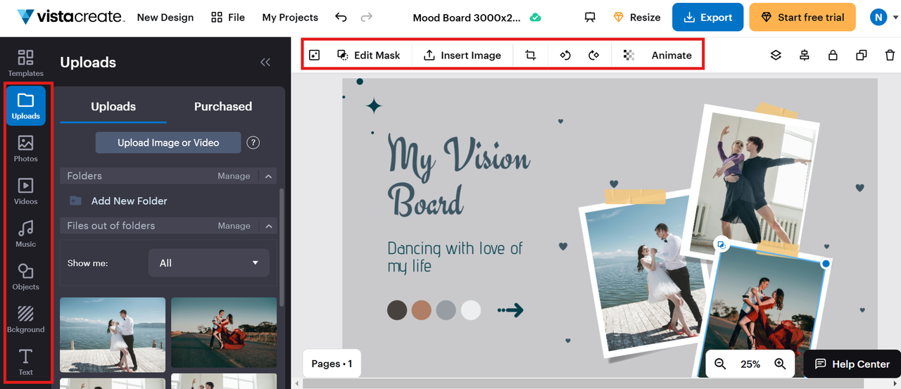 當你想到模板時,你的腦海中往往充滿了大量的選項和格式——因為多樣性是模板的真正優勢。在這方面,VistaCreate作為一個流行的模板驅動編輯器脫穎而出。這個線上工具可讓您在幾分鐘內製作個性化的靈感板,讓任何渴望視覺化他們的目標的人都可以使用它。通過訪問各種庫存照片和龐大的可定製模板庫,VistaCreate擁有您輕鬆實現願景所需的一切。